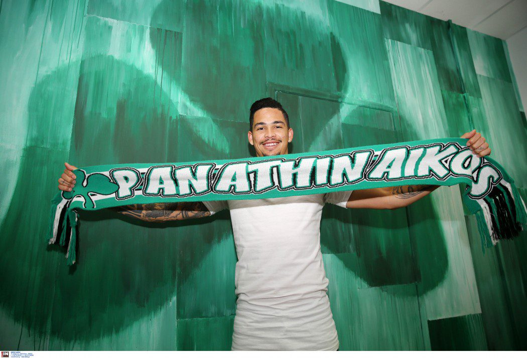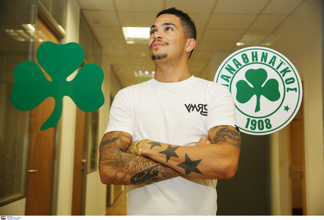 Δείτε φωτογραφίες με τον Βραζιλιάνο άσο του Παναθηναϊκό να... ποζάρει με κασκόλ και πράσινη σημαία, λίγο μετά την υπογραφή του συμβολαίου του στα γραφεία της ΠΑΕ.